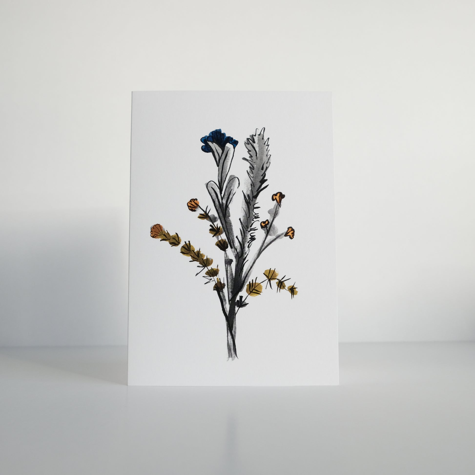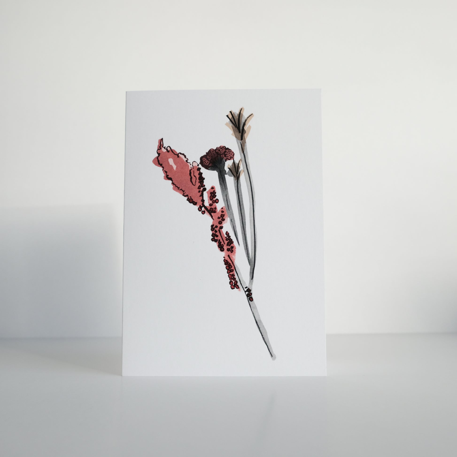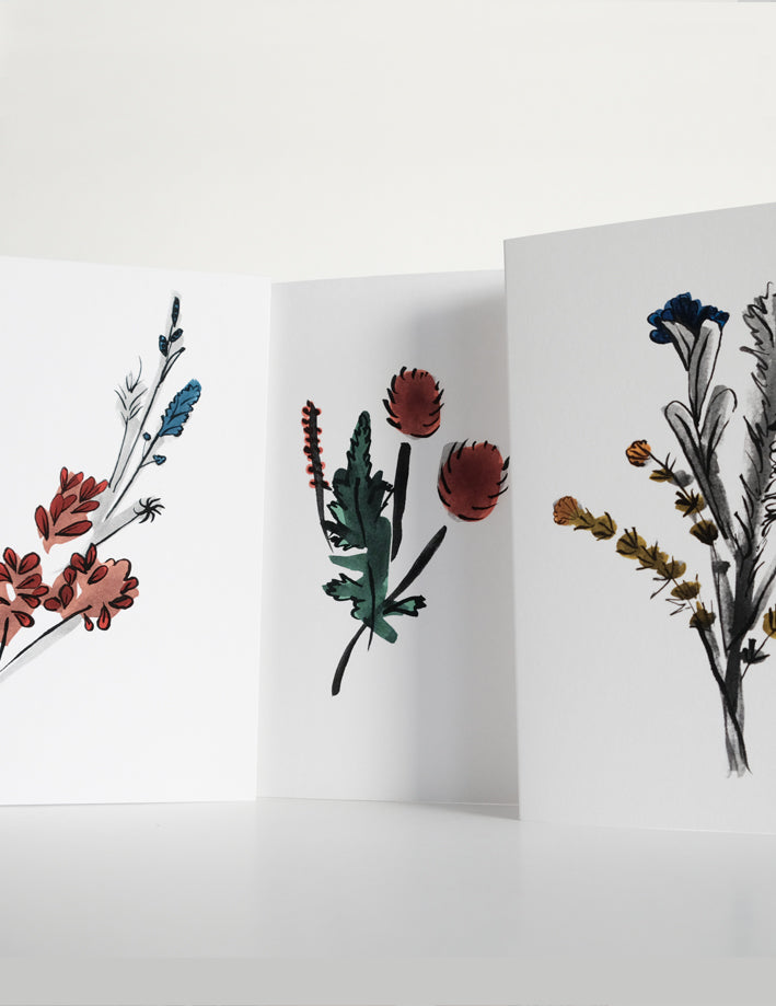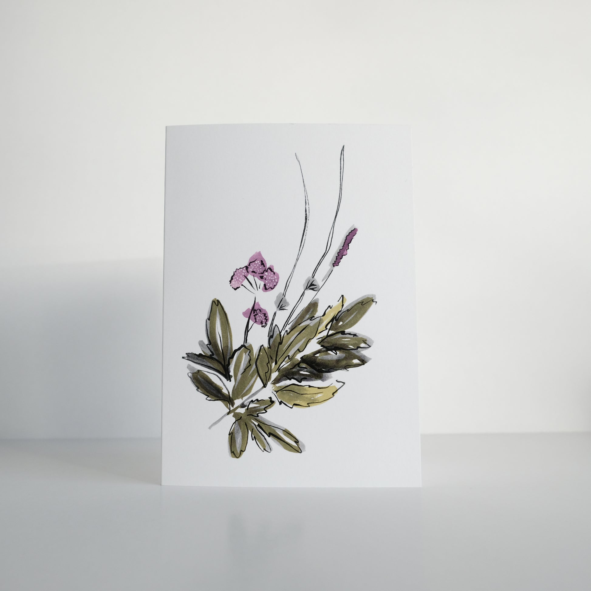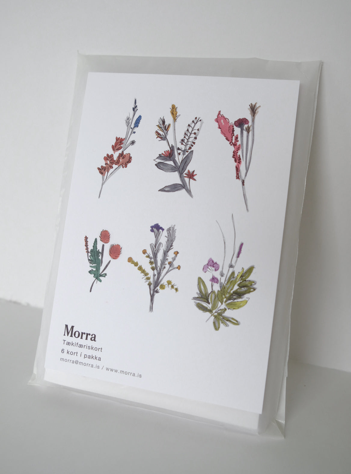 Tækifæriskort með teikningum af íslenskum plöntum.