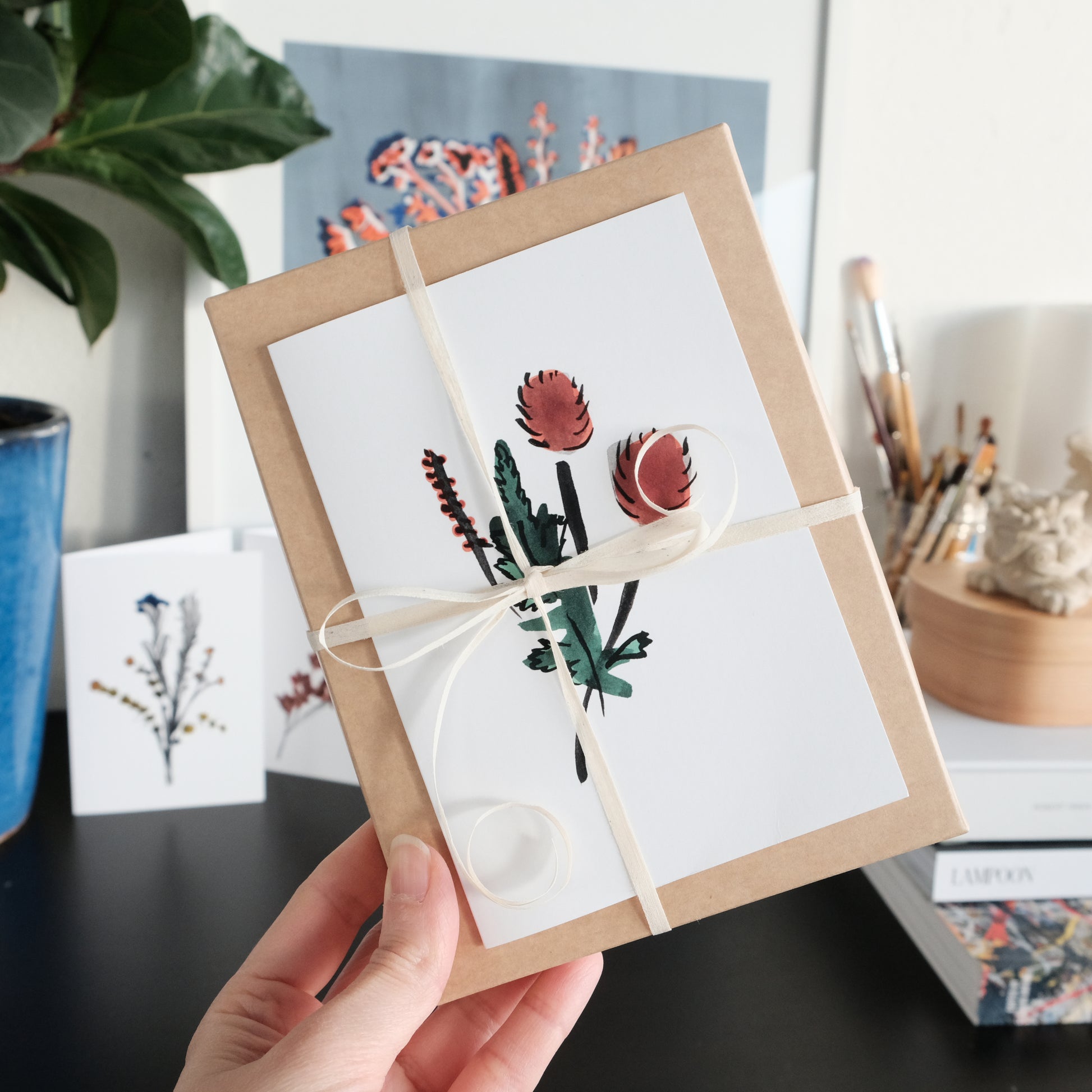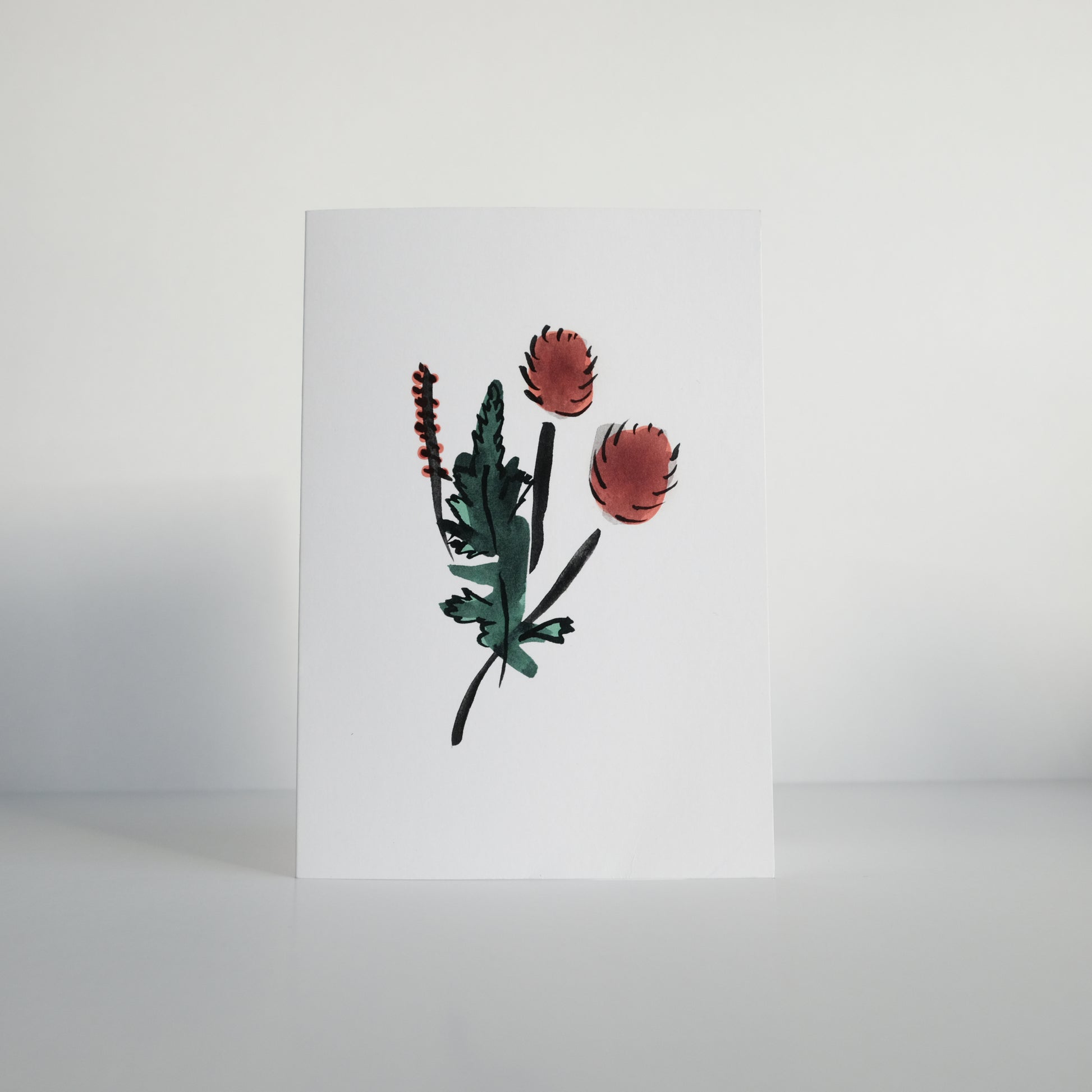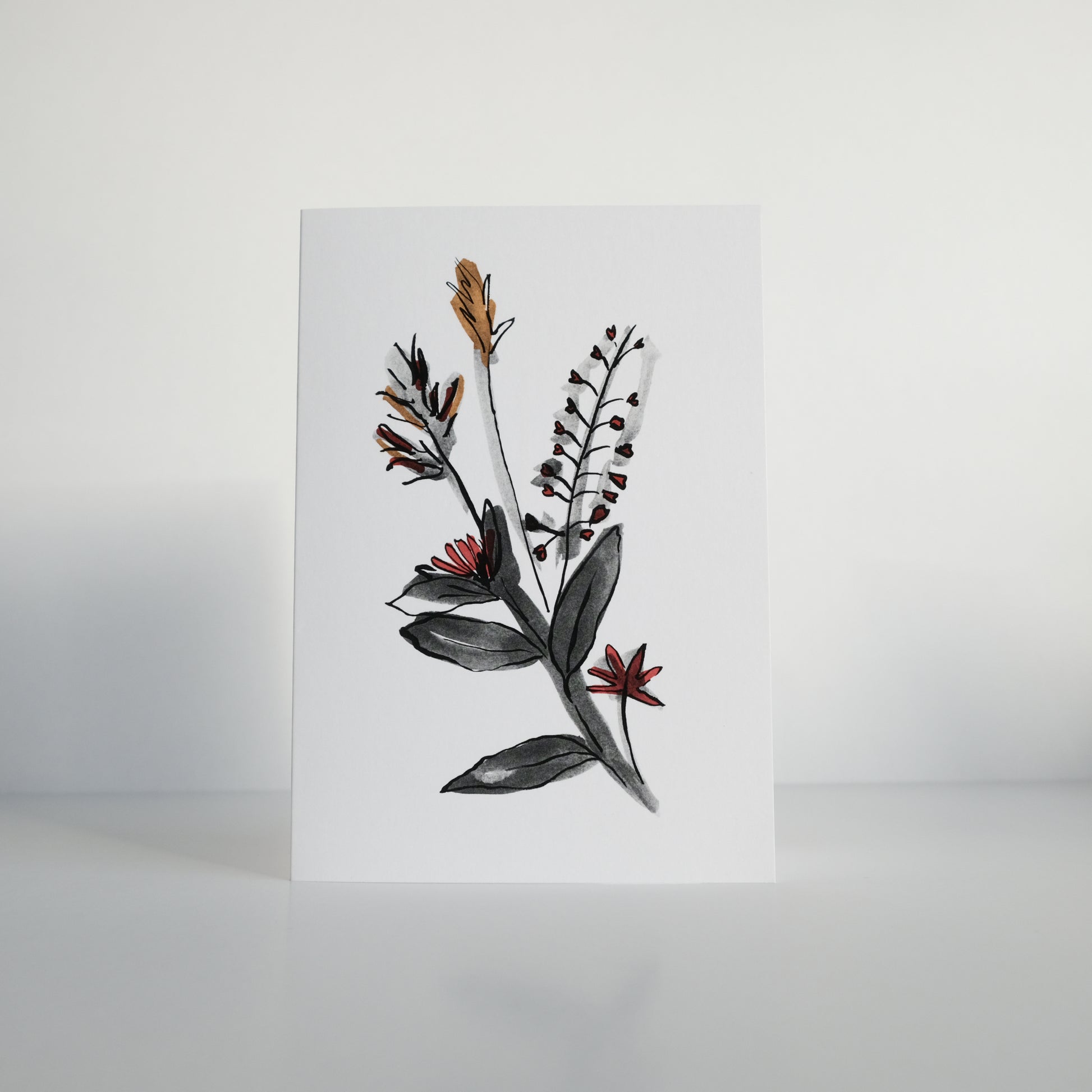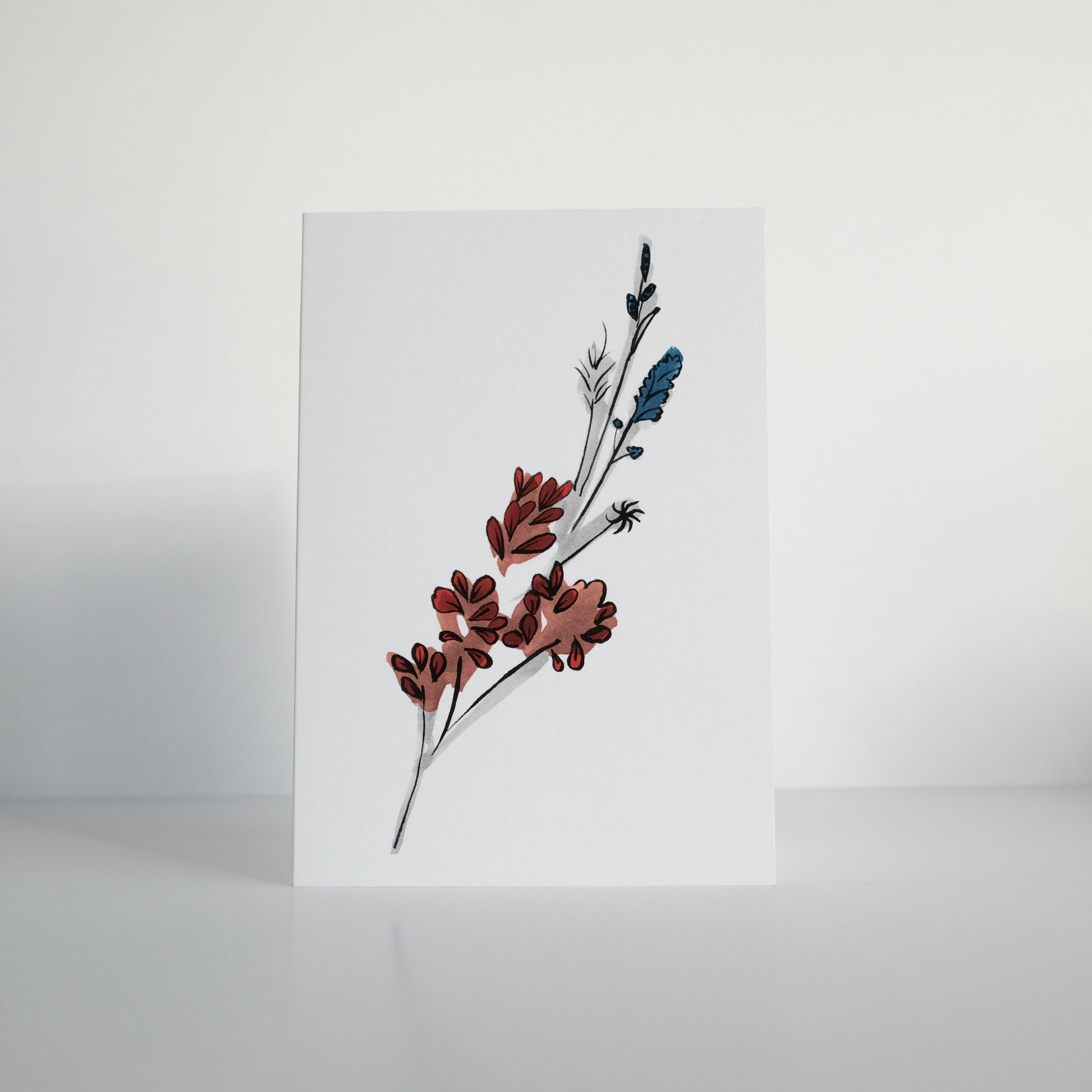 Tækifæriskort með teikningum af íslenskum plöntum.